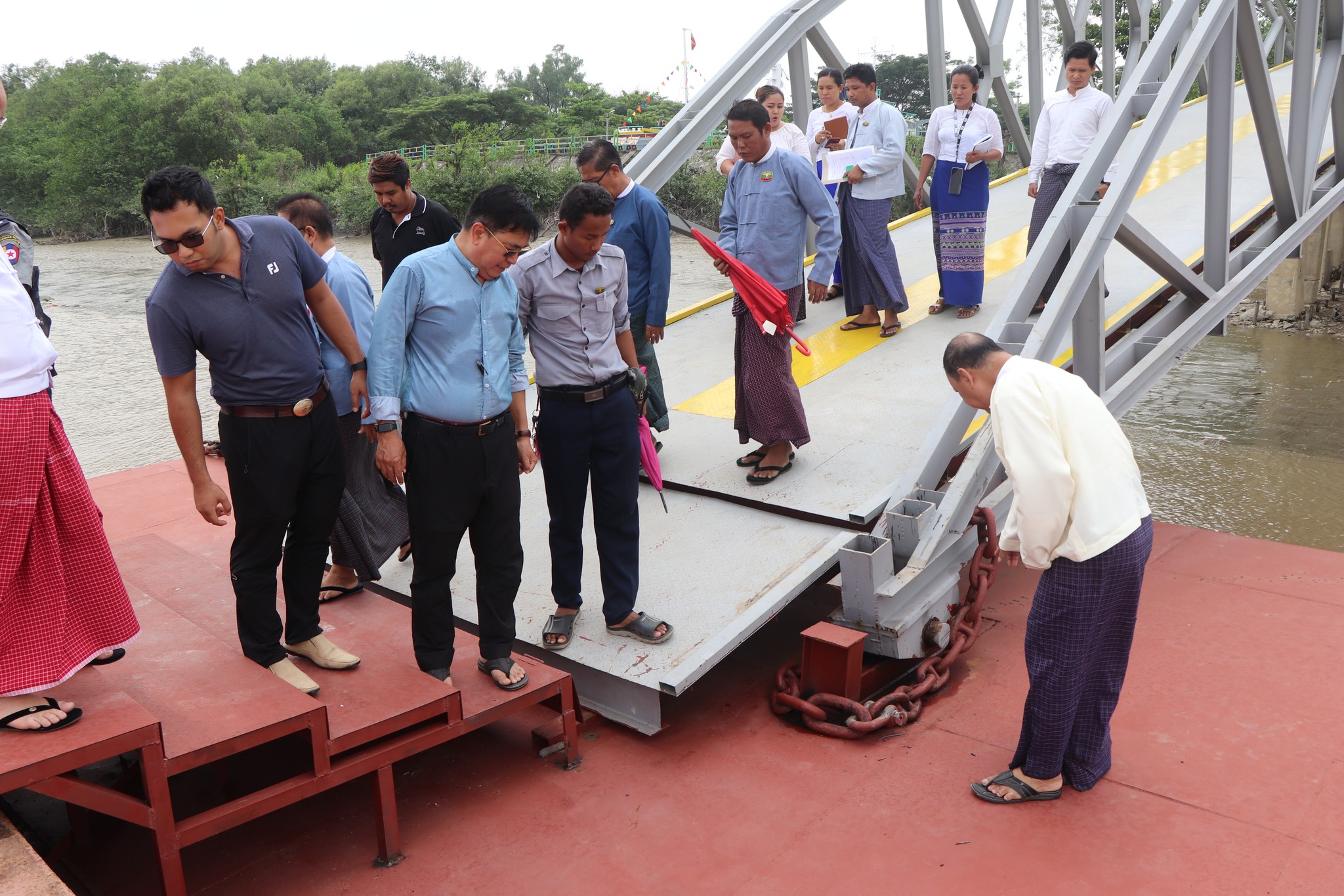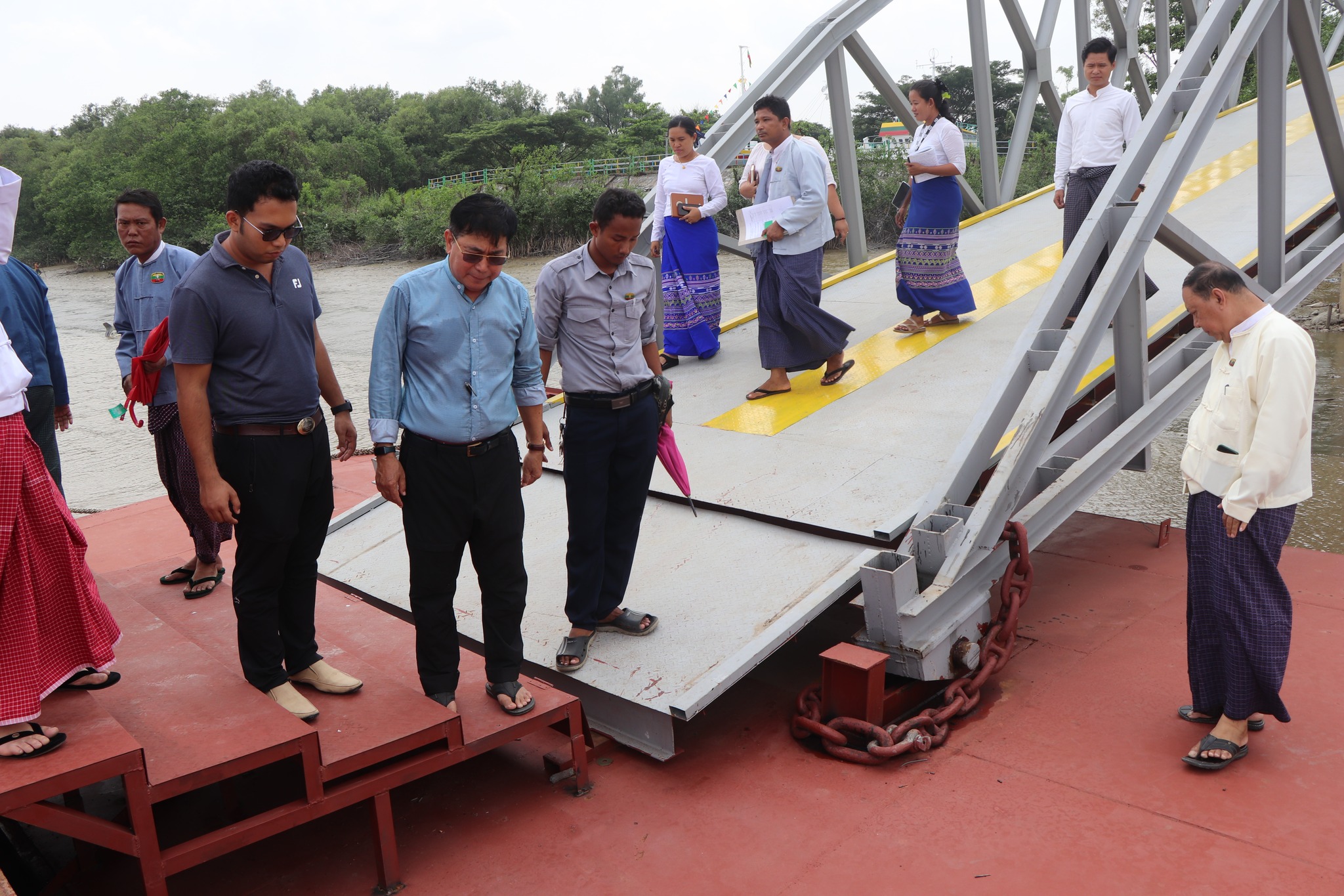 ပြည်ထောင်စုတိုင်းရင်းသားကျေးရွာ(ရန်ကုန်)အတွင်း သဘာဝဘေးအန္တရာယ်ကြောင့်ပျက်စီးခဲ့သည့် အခြေအနေများနှင့် ဆိပ်ခံဗောတံတားတည်ဆောက်ရေးလုပ်ငန်း (၁၀၀%) ဆောင်ရွက်ပြီးစီးမှုအခြေအနေများအား ကြည့်ရှု့စစ်ဆေးခြင်း မေလ (၂၄)ရက်၊ ရန်ကုန်