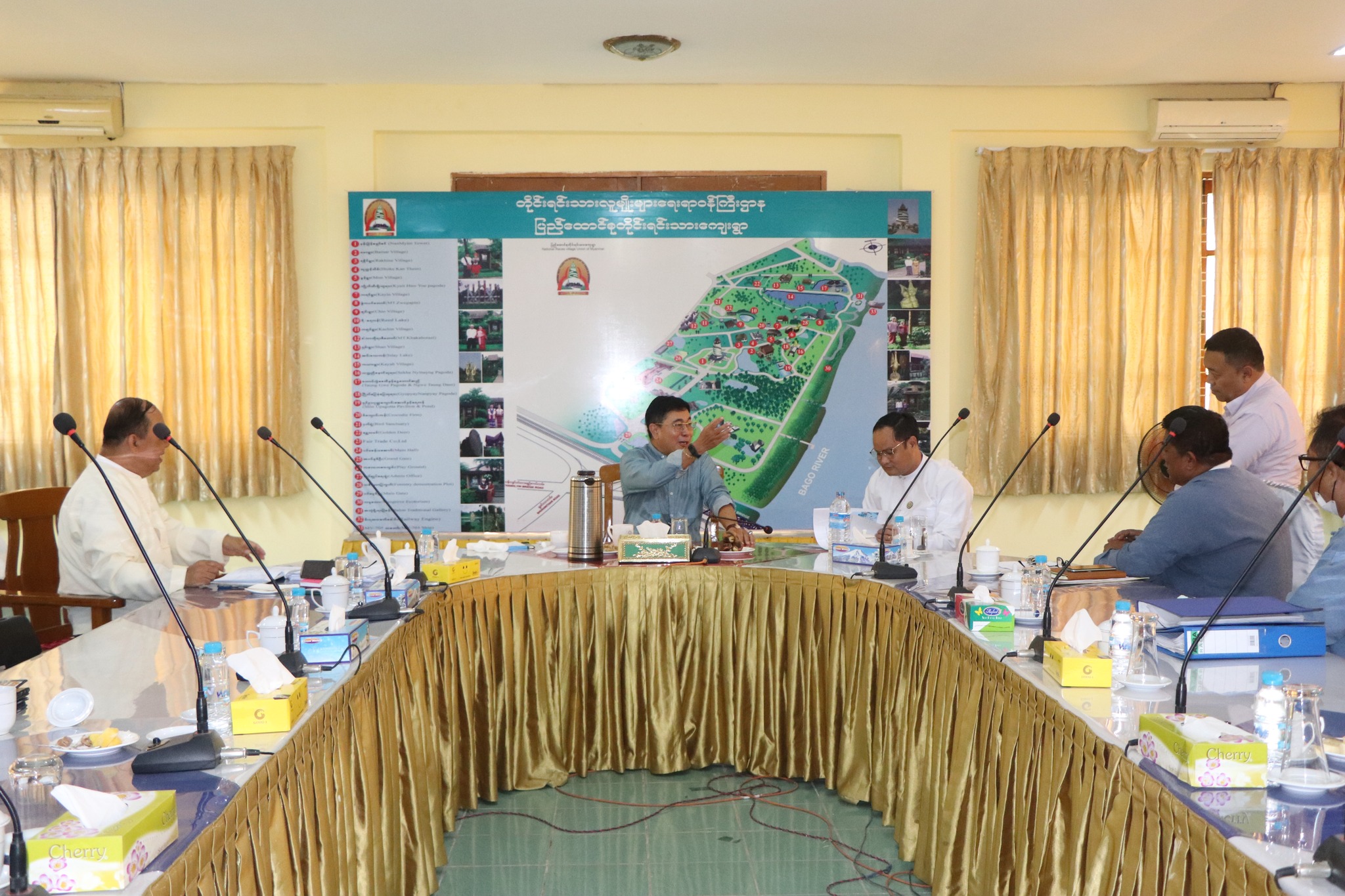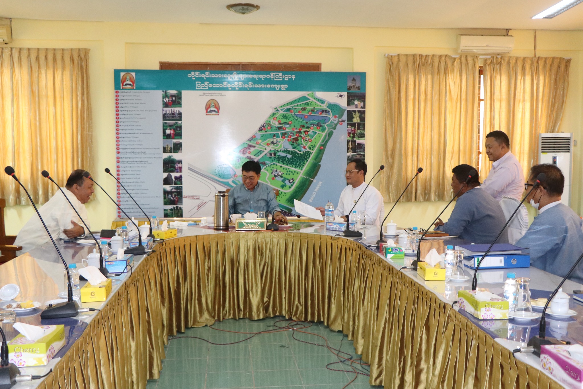 တိုင်းရင်းသားလူမျိုးများရေးရာဝန်ကြီးဌာန၊ ဒုတိယဝန်ကြီး ဦးဇော်အေးမောင်သည် ယနေ့မေလ(၂၄)ရက်နေ့ နေ့လယ်(၁၅:၀၀)နာရီအချိန်၌ ရန်ကုန်တိုင်းဒေသကြီးအစိုးရအဖွဲ့၊ တိုင်းရင်းသား ရေးရာဝန်ကြီး ဦးစောဂျက်ကော့ထူး၊ တိုင်းရင်းသားလူမျိုးများရေးရာဝန်ကြီးဌာန၊ တိုင်းရင်းသားစာပေ နှင့်ယဉ်ကျေးမှုဦးစီးဌာနညွှန်ကြားရေးမှူးချုပ်ဦးဝင်းနိုင်၊ဌာနဆိုင်ရာတာဝန်ရှိသူများလိုက်ပါ၍ ရန်ကုန်တိုင်းဒေသကြီး၊ သာကေတမြို့နယ်ရှိ ပြည်ထောင် စုတိုင်းရင်းသားကျေးရွာ(ရန်ကုန်)တွင် သဘာဝ ဘေးအန္တရာယ်ကြောင့် ကျေးရွာအတွင်း ပျက်စီးခဲ့သည့် အခြေအနေများအား ပြန်လည်ပြင်ဆင်နိုင်ရေး ကြည့်ရှု့စစ်ဆေးခြင်းနှင့် ၂၀၂၂−၂၀၂၃ခုဘဏ္ဍာရေးနှစ် ပြည်ထောင်စုဘဏ္ဍာရန်ပုံငွေဖြင့် တည်ဆောက်ခဲ့သည့် ဆိပ်ခံဗောတံတားစီမံကိန်းလုပ်ငန်း (၁၀၀%) ပြည့် ဆောင်ရွက်ပြီးစီးမှုအခြေအနေများအား ကြည့်ရှု့စစ်ဆေးရာ ဌာနဆိုင်ရာတာဝန်ရှိသူများမှ ရှင်းလင်းတင်ပြခဲ့ပြီး ဒုတိယဝန်ကြီး ဦးဇော်အေးမောင်မှ လိုအပ်သည်များ ညှိနှိုင်းပေါင်းစပ် ဆောင်ရွက်ပေးခဲ့ပါသည်။
