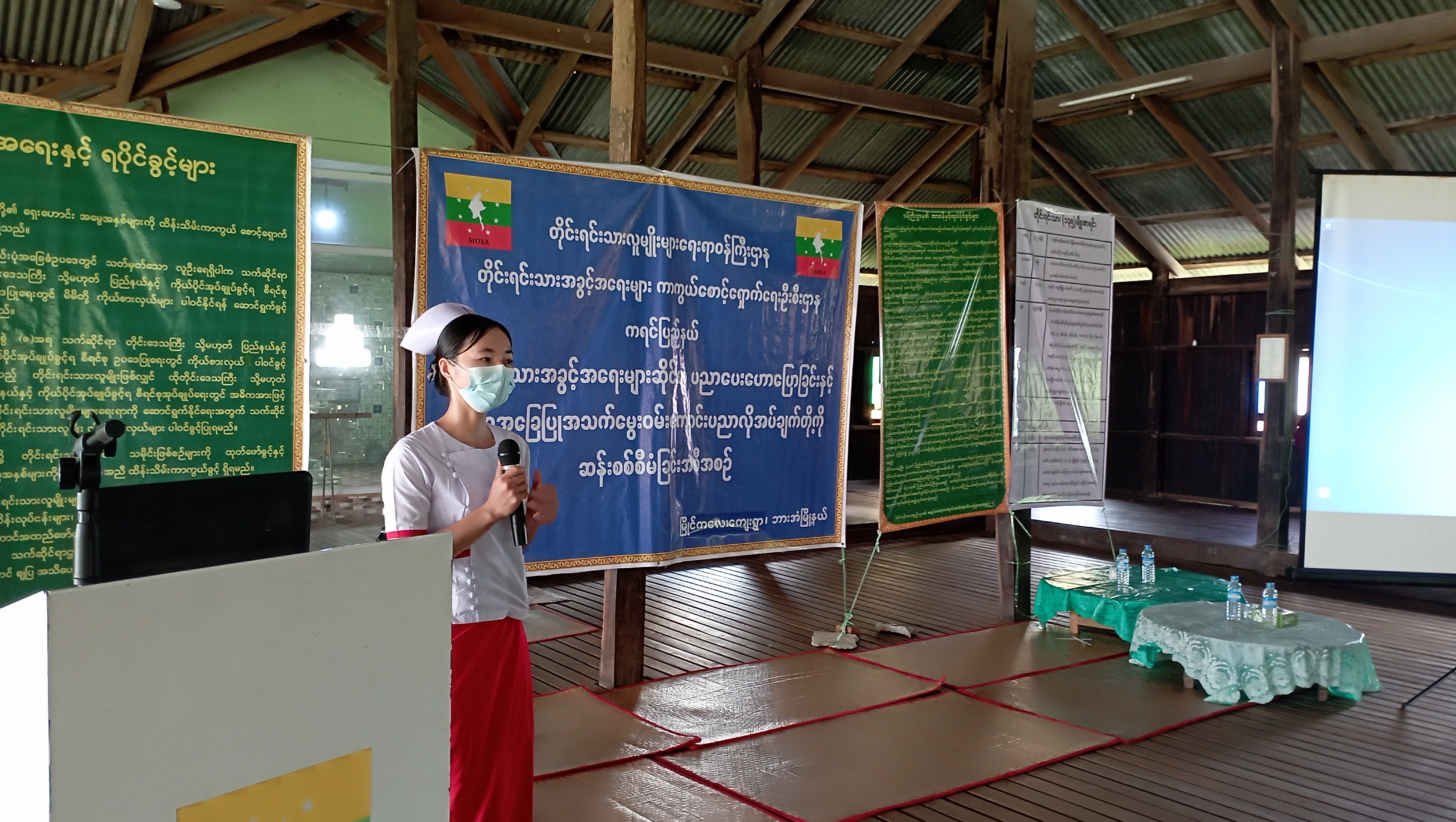 တိုင်းရင်းသားစာပေနှင့်ယဉ်ကျေးမှုဦးစီးဌာန၊ ကရင်ပြည်နယ် ညွှန်ကြားရေးမှူးရုံးမှ လက်ထောက် ညွှန်ကြားရေးမှူး ဦးမိုင်းညီသောင်းစိန်က တိုင်းရင်းသားစာပေနှင့်ယဉ်ကျေးမှု ထိန်းသိမ်းမှုဆိုင်ရာ ကိစ္စရပ်များ၊ တိုင်းရင်းသားစာပေသင်ကြားသည့် Teaching Assistant (TA) နှင့် Language Teacher (LT) ဆရာ/ဆရာမများ ခန့်ထားခြင်းဆိုင်ရာ ကိစ္စရပ်များ၊ တိုင်းရင်းသားပွဲတော်များ ကျင်းပရေးအတွက် ပြည်နယ်အစိုးရအဖွဲ့၏ ထောက်ပံ့ကူညီပေးမှုများနှင့် တိုင်းရင်းသား ဘာသာသင် ပုံပြ/ပုံပြင်စာအုပ်များ ဖြန့်ဝေခြင်းဆိုင်ရာ ကိစ္စရပ်များကိုလည်းကောင်း၊ ပြည်နယ်အသေးစား စက်မှုလက်မှုလုပ်ငန်းဦးစီးဌာနမှ လက်ထောက်ညွှန်ကြားရေးမှူး ဒေါ်ဖြူဖြူစိန် က ဦးစီးဌာနမှ ဖွင့်လှစ်ထားသော အသက်မွေးဝမ်းကျောင်းပညာဆိုင်ရာ သင်တန်းများအကြောင်းကိုလည်းကောင်း၊ ကျေးလက်ကျန်းမားရေးဌာနခွဲမှ သူနာပြု ဆရာမ ဒေါ်နော်မြဝင်းစိန် ကလည်း COVID – 19 ရောဂါ ကာကွယ်တားဆီးရေးဆိုင်ရာကိစ္စရပ်များ၊ သွေးလွန်တုတ်ကွေးကြိုတင် ကာကွယ်ခြင်းဆိုင်ရာ ကျန်းမာရေးအသိပညာပေးကိစ္စရပ်များကိုလည်းကောင်း ရှင်းလင်းပြောကြားခဲ့ပါသည်။