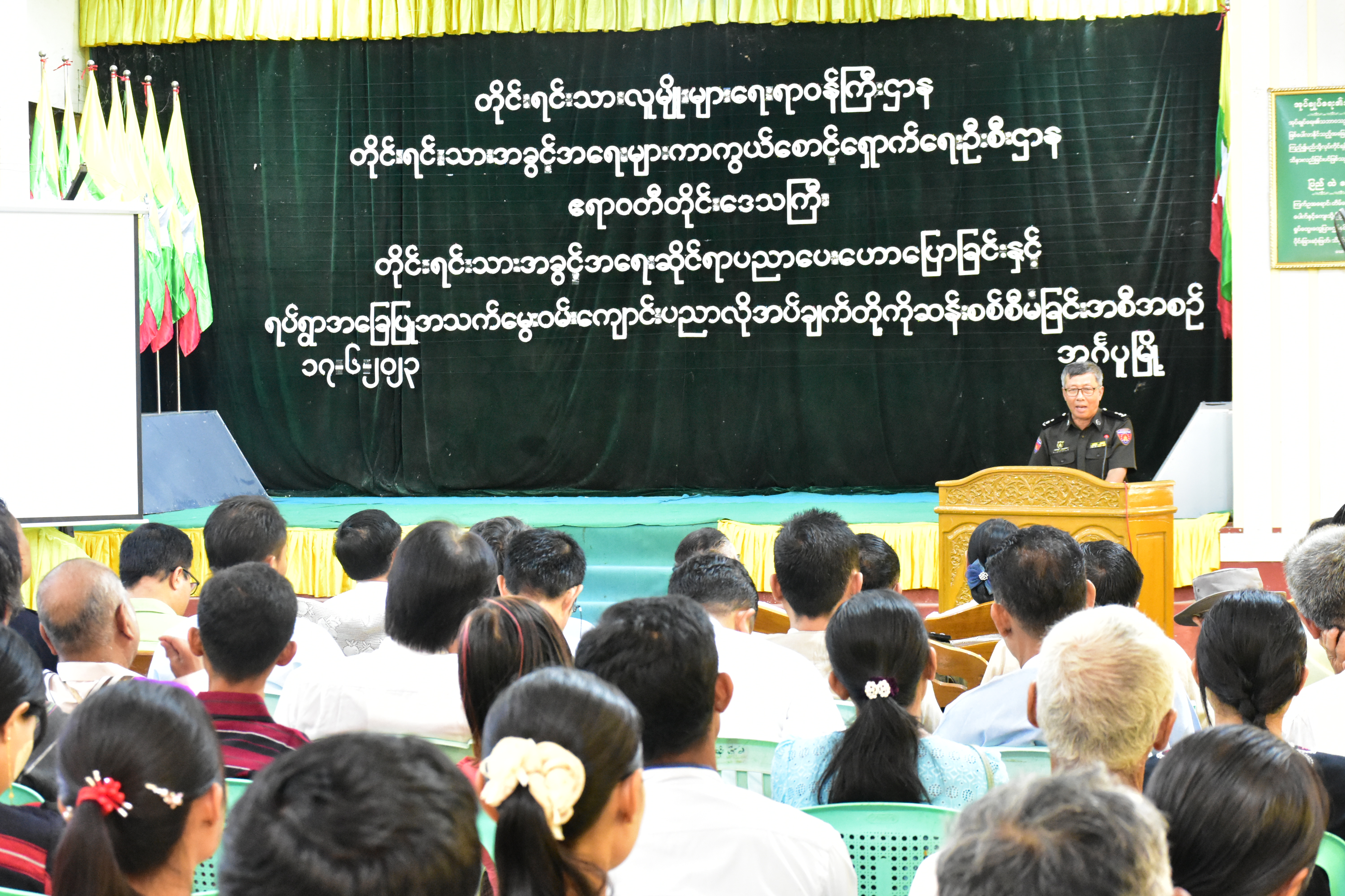 တိုင်းရင်းသားအခွင့်အရေးများကာကွယ်စောင့်ရှောက်ရေးဦးစီးဌာန၊ ဧရာဝတီတိုင်းဒေသကြီး၊ ညွှန်ကြားရေးမှူးရုံးမှဦးစီး၍ “တိုင်းရင်းသားအခွင့်အရေးဆိုင်ရာ အသိပညာပေးဟောပြောခြင်းနှင့် ရပ်ရွာအခြေပြုအသက်မွေးဝမ်းကျောင်းပညာလိုအပ်ချက်တို့ကို ဆန်းစစ်စီမံခြင်းအစီအစဉ်”ကို ဧရာဝတီတိုင်းဒေသကြီး၊ မြန်အောင်ခရိုင်၊ အင်္ဂပူမြို့၊ မြို့နယ်အထွေထွေအုပ်ချုပ်ရေးဦးစီးဌာန၊ အစည်းအဝေးခန်းမ၌ ၁၇-၆-၂၀၂၃ ရက်နေ့တွင် ကျင်းပပြုလုပ်ခဲ့ပါသည်။