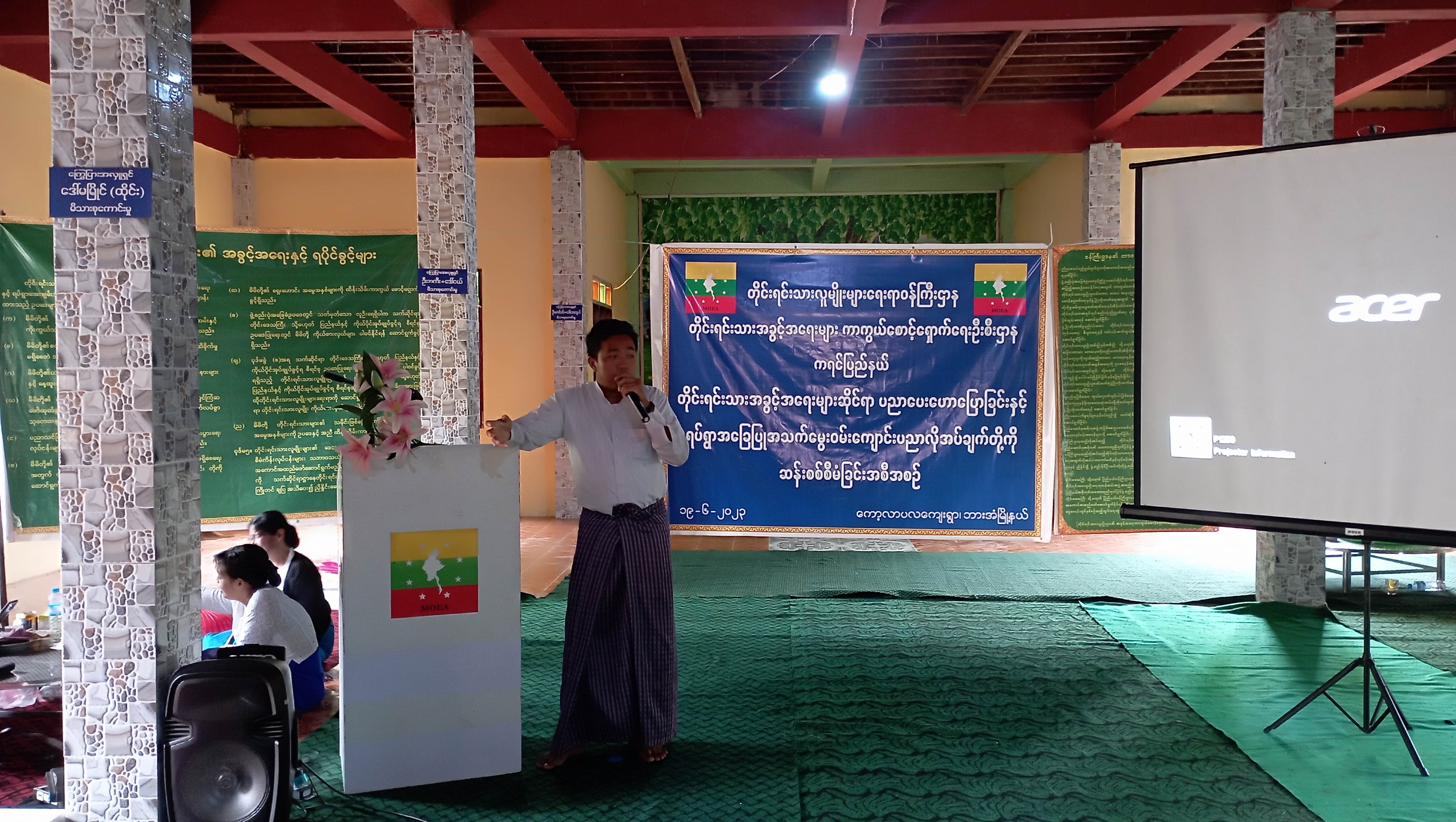 တိုင်းရင်းသားအခွင့်အရေးဆိုင်ရာအသိပညာပေးဟောပြောခြင်းနှင့် ရပ်ရွာအခြေပြုအသက်မွေးဝမ်းကျောင်းပညာ လိုအပ်ချက်တို့ကို ဆန်းစစ်စီမံခြင်းအစီအစဉ်ကို ဘားအံမြို့နယ်တွင် ကျင်းပ ဘားအံ၊ ဇွန် ၁၉