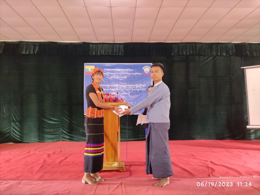 ထို့နောက် တိုင်းရင်းသားအခွင့်အရေးများကာကွယ်စောင့်ရေှာက်ရေးဦးစီးဌာနမှ တက်ရောက်လာကြသော တိုင်းရင်းသားစာပေနှင့်ယဉ်ကျေးမှုအဖွဲ့များသို့ တိုင်းရင်းသားလူမျိုးများ၏ အခွင့်အရေးကာကွယ်စောင့်ရှောက်သည့် ဥပဒေ၊ နည်းဥပဒေစာအုပ်များ၊ လက်ကမ်းစာစောင်များ ပေးအပ်ခဲ့ပြီးနောက် တက်ရောက်လာကြသူများနှင့် စုပေါင်းမှတ်တမ်းတင် ဓါတ်ပုံရိုက်ကူးကာ အခမ်းအနားကို ရုတ်သိမ်းခဲ့ပါသည်။