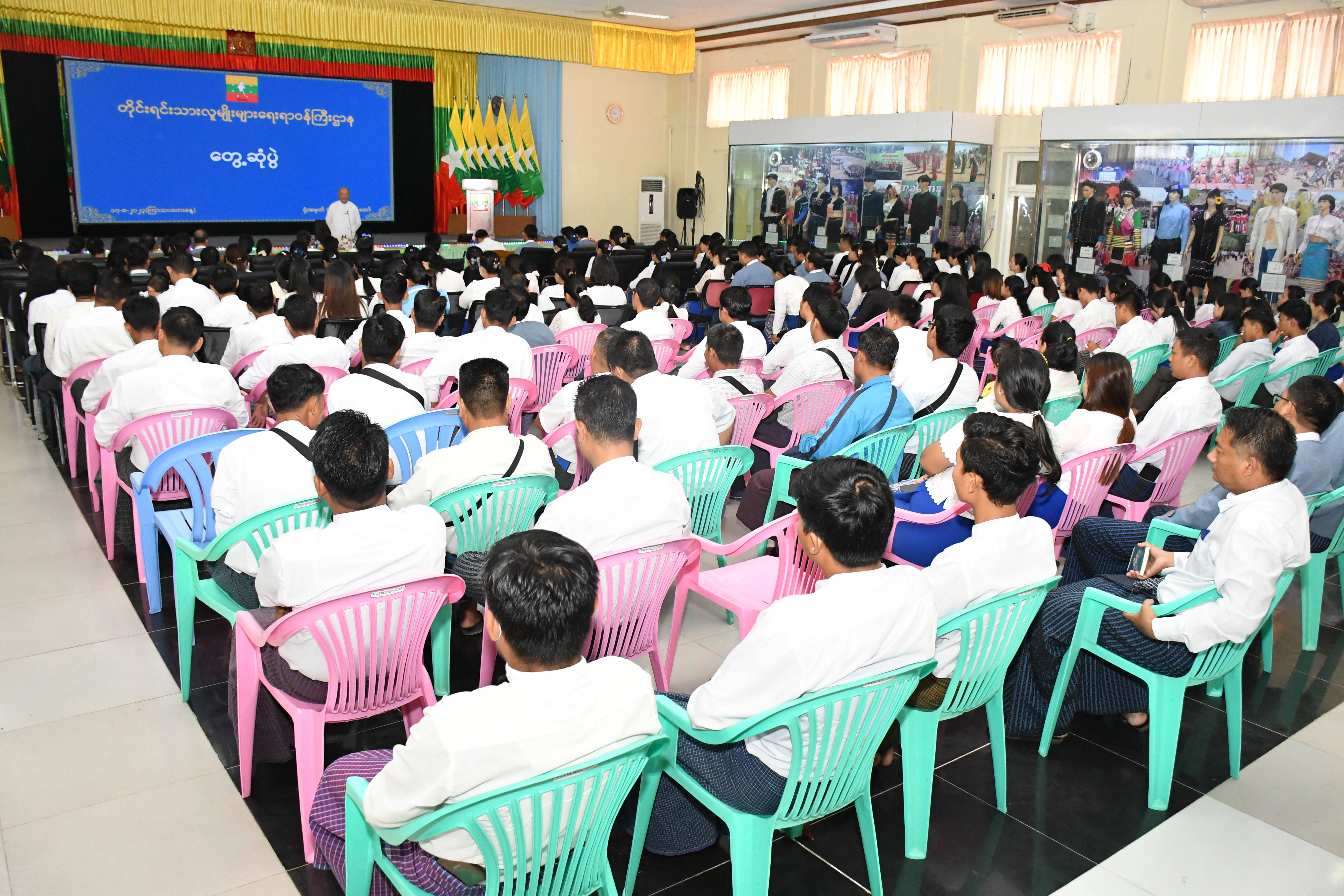 ထို့နောက် ဒုတိယဝန်ကြီးဦးဇော်အေးမောင်က မြန်မာ့ပထဝီနိုင်ငံရေး၊ ကမ္ဘာ့ပထဝီနိုင်ငံရေး နှင့်မြန်မာနိုင်ငံကြုံတွေ့ခဲ့ရသည့် သမိုင်းကြောင်းများကို ရှင်းလင်းဆွေးနွေးပြီး ယနေ့ခေတ် လူငယ်များသည် မြန်မာနိုင်ငံ၏ သမိုင်းကြောင်းအမှန်ကို သိရှိရန်လိုအပ်ပါကြောင်း၊ ဝန်ထမ်း များအနေဖြင့် မိမိတို့၏ အရည်အသွေး မြှင့်တင်နိုင်ရန်အတွက် ရိုးသားခြင်း၊ ကြိုးစားခြင်း၊ လုံ့လဝီရိယရှိခြင်း၊ လုပ်ငန်းကျွမ်းကျင်မှုရှိခြင်း၊ စည်းစနစ်ကျနမှုရှိခြင်းတို့ လိုအပ်ပါကြောင်း၊ နိုင်ငံတော်တည်ငြိမ်အေးချမ်းရေးအတွက် အစိုးရ၊ ဝန်ထမ်း၊ ပြည်သူများအားလုံး ညီညွတ်စွာ အတူတကွ ပူးပေါင်းဆောင်ရွက်ကြရမည် ဖြစ်ပါကြောင်း၊ ဝန်ထမ်းများအနေဖြင့် နိုင်ငံတော်၏ ရှေ့လုပ်ငန်းစဉ်(၅)ရပ်နှင့် ဦးတည်ချက်(၉)ရပ်အား အကောင်အထည်ဖော် ဆောင်ရွက်ကြရမည် ဖြစ်ပါကြောင်း ပြောကြားပါသည်။
