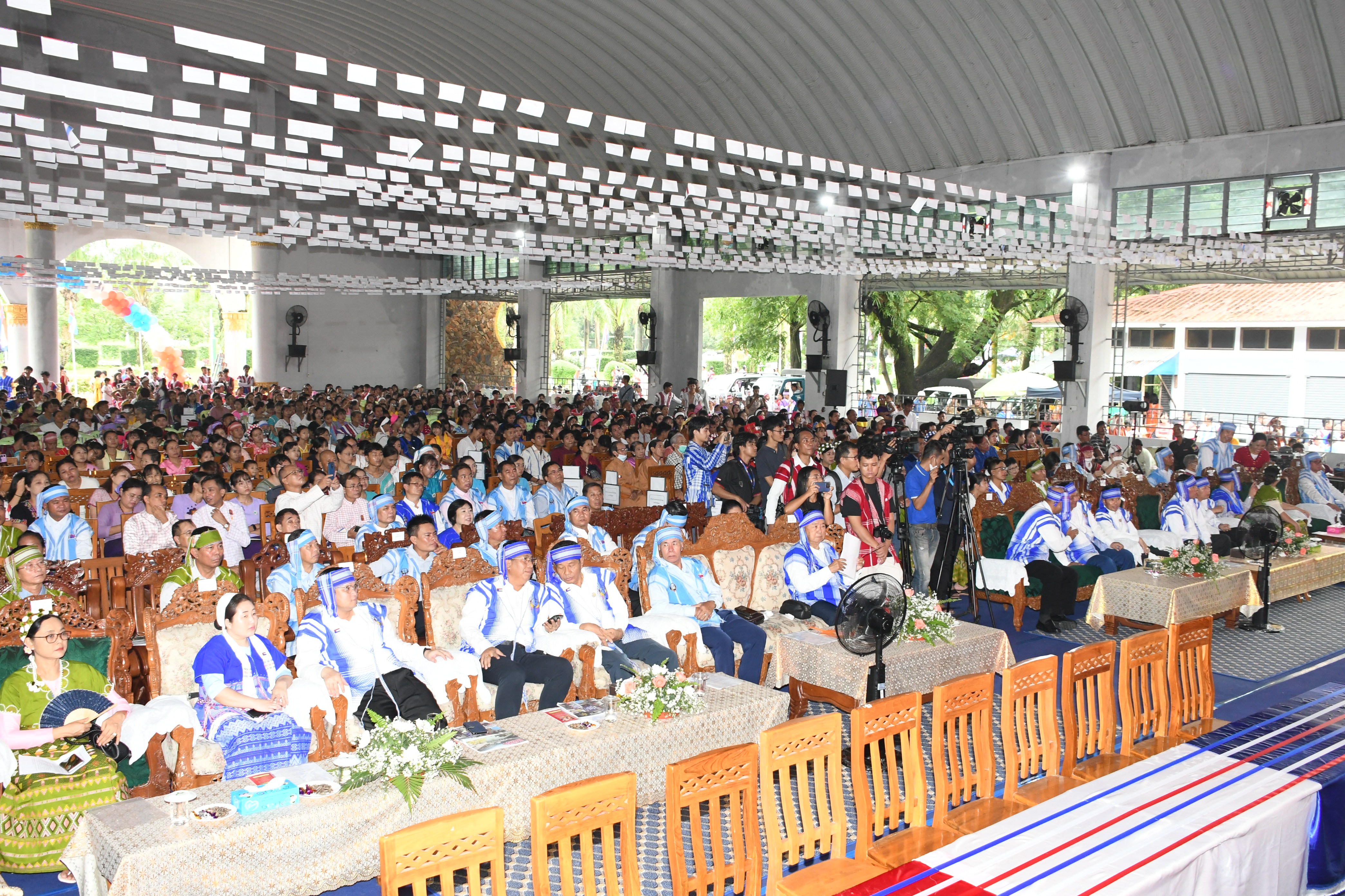 ပထမဦးစွာ အခမ်းအနားကို နိုင်ငံတော်စီမံအုပ်ချုပ်ရေးကောင်စီ ဗဟိုအကြံပေး အဖွဲ့ခေါင်းဆောင် ဦးစောထွန်းအောင်မြင့်၊ တိုင်းရင်းသားလူမျိုးများရေးရာဝန်ကြီးဌာန၊ ပြည်ထောင်စုဝန်ကြီး Jeng Phang နော်တောင်၊ နိုင်ငံတော်စီမံအုပ်ချုပ်ရေးကောင်စီ ဗဟိုအကြံပေးအဖွဲ့ဝင် ဦးစောဒယ်နီရယ်၊ ရန်ကုန်တိုင်း စစ်ဌာနချုပ် တိုင်းမှူး ဗိုလ်ချုပ်ဇော်ဟိန်း၊ ရန်ကုန်တိုင်းဒေသကြီး အစိုးရအဖွဲ့ဝင် လုံခြုံရေးနှင့်နယ်စပ်ရေးရာဝန်ကြီး ဗိုလ်မှူးကြီး ဝင်းတင့်နှင့် တိုင်းရင်းသားရေးရာဝန်ကြီး ဦးစောဂျက်ကော့ထူးတို့က ဖားစည် (၉) ချက်တီးပြီး ကရင်လူငယ် (၉) ဦးတို့က ကျွဲချိုမှုတ်၍ အခမ်းအနားကို ဖွင့်လှစ်ခဲ့ပါသည်။