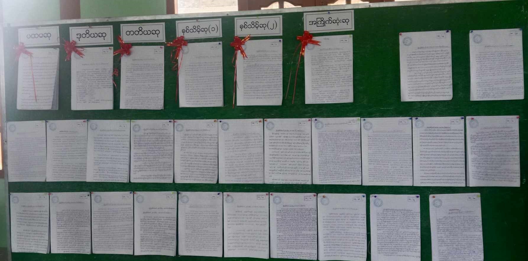 ယင်းနောက် စာစီစာကုံးနှင့် ပန်းချီပြိုင်ပွဲဝင်များ၌ ရေးသားပုံဖော်ထားသည့် လက်ရာများအား နံရံကပ်ပြဘုတ်တွင် ပြသထားရှိမှုများအား လေ့လာကြည့်ရှုခဲ့ကြကြောင်း သတင်းရရှိပါသည်။