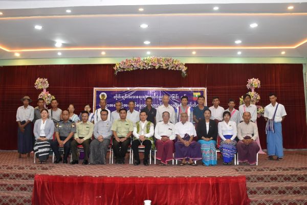 ဆက်လက်၍ ပဲခူးတိုင်းဒေသကြီးအစိုးရအဖွဲ့ တိုင်းရင်းသားရေးရာဝန်ကြီး ဦးစောလင်းအောင်က အသိပညာပေး ဆွေးနွေးဟောပြောသည့် ဌာနဆိုင်ရာမှ တာဝန်ရှိသူများနှင့် ဒေသခံတိုင်းရင်းသားများအား အမှတ်တရလက်ဆောင်ပေးအပ်ခဲ့ပြီးနောက် စုပေါင်း မှတ်တမ်းတင် ဓာတ်ပုံရိုက်ကူးခဲ့ကြပါသည်။