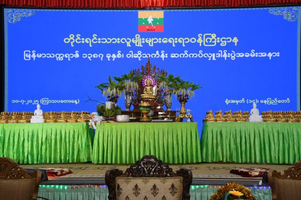 တိုင်းရင်းသားလူမျိုးများရေးရာဝန်ကြီးဌာန မိသားစုများ၏ ဒသမအကြိမ်မြောက် ဝါဆိုသင်္ကန်းဆက်ကပ်လှူဒါန်းပွဲအခမ်းအနားကို ယနေ့နံနက်ပိုင်းတွင် တိုင်းရင်းသားလူမျိုး များရေးရာဝန်ကြီးဌာန၌ ကျင်းပပြုလုပ်ရာ ပြည်ထောင်စုဝန်ကြီး ခွန်သန့်ဇော်ထူးနှင့်ဇနီး၊ ဒုတိယဝန်ကြီး ဦးဇော်အေးမောင်၊ ညွှန်ကြားရေးမှူးချုပ်များ၊ ဒုတိယအမြဲတမ်းအတွင်းဝန်၊ ဒုတိယညွှန်ကြားရေးမှူးချုပ်နှင့် အရာထမ်း၊ အမှုထမ်းများ တက်ရောက်ကြည်ညိုကြပါသည်။ အခမ်းအနားကို နမောတဿ(၃)ကြိမ်ရွတ်ဆို၍ ဖွင့်လှစ်ခဲ့ပြီး နေပြည်တော်၊ ဇမ္ဗူသီရိမြို့နယ် သံဃာ့နာယက ဥက္ကဋ္ဌ၊ အေးမြရွှေပြည် ကျောင်းတိုက် ပဓာနနာယက ဆရာတော် ဘဒ္ဒန္တမဉ္ဇူသကမှ ဗုဒ္ဓါဘိသေက ဘုရားအနေကဇာတင်ပြီး ပြည်ထောင်စုဝန်ကြီးနှင့်ဇနီး၊ ဒုတိယဝန်ကြီးနှင့် ဧည့်ပရိတ်သတ်များက ဆရာတော် ဘဒ္ဒန္တမဉ္ဇူသကထံမှ  ငါးပါးသီလ ခံယူဆောက်တည်ကြပြီး ဆရာတော်များမှ ပရိတ်တရားတော်များ ရွတ်ပွားသရဇ္စျာယ် ချီးမြှင့်တော်မူကြပါသည်။ ဆက်လက်၍ ပြည်ထောင်စုဝန်ကြီးနှင့်ဇနီး၊ ဒုတိယဝန်ကြီးနှင့် တာဝန်ရှိသူများက ဆရာတော်၊ သံဃာတော်များထံ ဝါဆိုသင်္ကန်းနှင့် လှူဖွယ်ပစ္စည်းများကို ဆက်ကပ်လှူဒါန်းကြပါသည်။ ထို့နောက် ဆရာတော်ထံမှ အနုမောဒနာတရားများ နာယူကြည်ညိုကြပြီး လှူဒါန်းမှု အစုစုတို့အတွက် ရေစက်သွန်းချ အမျှပေးဝေကာ “ဗုဒ္ဓသာသနံ စိရံ တိဋ္ဌတု” သုံးကြိမ် ရွတ်ဆိုဆုတောင်း၍  အခမ်းအနားကို ရုပ်သိမ်းပြီး ဆရာတော်၊ သံဃာတော် အရှင်သူမြတ် တို့အား နေ့ဆွမ်းဆက်ကပ် လှူဒါန်းခဲ့ကြကြောင်း သတင်းရရှိပါသည်။
