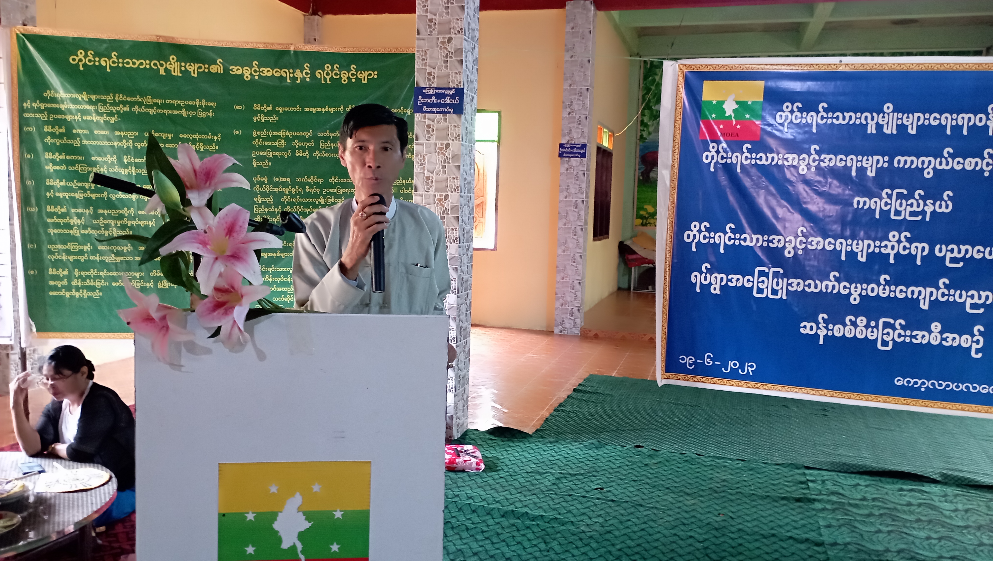 ဆက်လက်ဖတ်ရှုပါရန် ကရင်ပြည်နယ်အစိုးရအဖွဲ့၊ တိုင်းရင်းသားရေးရာဝန်ကြီး၏ကြီးကြပ်မှုဖြင့် တိုင်းရင်းသား အခွင့်အရေးများကာကွယ်စောင့်ရှောက်ရေးဦးစီးဌာန၊ ကရင်ပြည်နယ်ညွှန်ကြားရေးမှူးရုံးမှ ကြီး မှူး၍ "တိုင်းရင်းသားအခွင့်အရေးဆိုင်ရာအသိပညာပေးဟောပြောခြင်းနှင့် ရပ်ရွာအခြေပြုအသက် မွေးဝမ်းကျောင်းပညာလိုအပ်ချက်တို့ကိုဆန်းစစ်စီမံခြင်းအစီအစဉ်" ကို (၆-၆-၂၀၂၃) ရက်နေ့၊ နံနက် (၉:၀၀) နာရီအချိန်တွင် ဘားအံမြို့နယ်၊ မိန်းမလှကျွန်းကျေးရွာ၊ သုဇိတာရာမဘုန်း တော်ကြီးကျောင်း၌ ကျင်းပပြုလုပ်ခဲ့ပါသည်။ ပထမဦးစွာ ကရင်ပြည်နယ်တိုင်းရင်းသားရေးရာဝန်ကြီး ဦးစန်းကိုက တိုင်းရင်းသားလူမျိုးများ၏ အခွင့်အရေးကာကွယ်စောင့်ရှောက်သည့် ဥပဒေ/ နည်းဥပဒေများအား သိရှိစေရန်၊ ဒေသခံတိုင်းရင်းသားများ၏ အသက်မွေးဝမ်းကျောင်းပညာလိုအပ်မှုတို့ကို သိရှိနိုင်ရန်နှင့် လိုအပ်ပါ က သက်ဆိုင်ရာ ဦးစီးဌာနများနှင့် ချိတ်ဆက်ဆောင်ရွက်ပေးနိုင်ရန်အတွက် စစ်တမ်းကောက်ယူရ ခြင်းဖြစ်ကြောင်း စသည်ဖြင့် အဖွင့်အမှာစကားပြောကြားခဲ့ပါသည်။ ထို့နောက် တိုင်းရင်းသားအခွင့်အရေးများကာကွယ်စောင့်ရှောက်ရေးဦးစီးဌာန၊ ကရင်ပြည် နယ်၊ ညွှန်ကြားရေးမှူးရုံးမှ ဒုတိယညွှန်ကြားရေးမှူး၊ ဦးကျော်စိုးက တိုင်းရင်းသားလူမျိုးများ၏ အခွင့်အရေးကာကွယ်စောင့်ရှောက်သည့် ဥပဒေ/နည်းဥပဒေများ၊ ရှေ့လုပ်ငန်းစဉ်များ၊ မဟာဗျူဟာ များကိုလည်းကောင်း၊ တိုင်းရင်းသားစာပေနှင့် ယဉ်ကျေးမှုဦးစီးဌာန၊ ကရင်ပြည်နယ်၊ ညွှန်ကြားရေး မှူးရုံးမှ လက်ထောက်ညွှန်ကြားရေးမှူး ဦးမိုင်းညီသောင်းစိန်က တိုင်းရင်းသားဘာသာသင် ဆရာ/ ဆရာမ Teaching Assistant (TA)နှင့် Language Teacher (LT) များခန့်အပ်ထားမှုကိစ္စများ၊ ပြည်နယ်အစိုးရရန်ပုံငွေဖြင့် တိုင်းရင်းသားဘာသာသင်စာအုပ် (G1,G2,G3) စာအုပ်များ၊ ပုံပြ/ ပုံပြင်စာအုပ်များထုတ်ဝေဖြန့်ဝေလျက်ရှိကြောင်းကိုလည်းကောင်း၊ ပြည်နယ်အသေးစားစက်မှု လက်မှုလုပ်ငန်းဦးစီးဌာနမှ လက်ထောက်ညွှန်ကြားရေးမှူး ဒေါ်ဖြူဖြူစိန်က ဦးစီးဌာနမှ ဖွင့်လှစ် ထားသော အသက်မွေးဝမ်းကျောင်းပညာဆိုင်ရာ သင်တန်းများနှင့်ပတ်သက်၍လည်ကောင်း၊ ပြည်နယ်လူမှုဝန်ထမ်းဦးစီးဌာနမှ ဦးစီးအရာရှိ ဒေါ်စန်းစန်းလှိုင်က ကလေးသူငယ်အခွင့်အရေးများ၊ အမျိုးသမီးအခွင့်အရေးများ၊ နိုင်ငံသားအခွင့်အရေးများ၊ မသန်စွမ်းအခွင့်အရေးများ၊ လူမှုရေးပင်စင် များ၊ ကိုယ်ဝန်ဆောင်အမျိုးသမီးများ ထောက်ပံ့ပေးမှု ကိစ္စများအားလည်းကောင်း၊ တိုင်းရင်းသား အခွင့်အရေးများကာကွယ်စောင့်ရှောက်ရေးဦးစီးဌာန၊ ကရင်ပြည်နယ်၊ ညွှန်ကြားရေးမှူးရုံးမှ အငယ်တန်းစာရေး ဦးအောင်ဖြိုးသော်က အမုန်းစကားနှင့် အကြမ်းဖက်မှုဖြစ်စေရန် လှုံ့ဆော်မှုကို တား