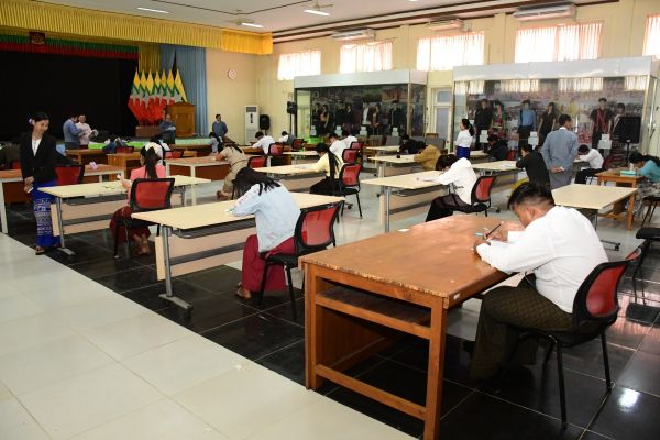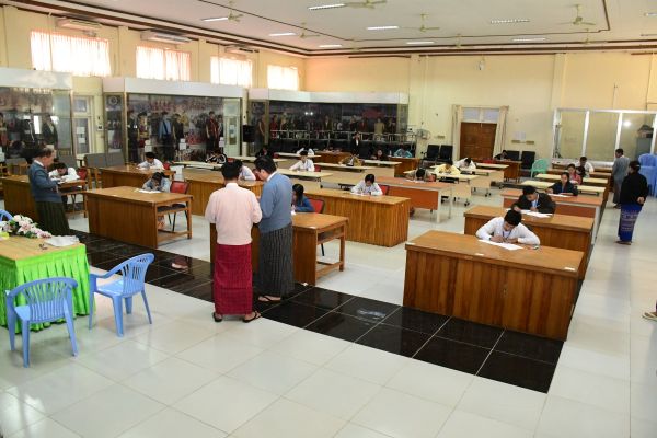 တိုင်းရင်းသားလူမျိုးများရေးရာဝန်ကြီးဌာန ဒုတိယဝန်ကြီး ဦးဇော်အေးမောင်၊ အမြဲတမ်းအတွင်းဝန်နှင့် ညွှန်ကြားရေးမှူးချုပ်တို့က ပြည်ထောင်စုဝန်ကြီးရုံးတွင် လစ်လပ်လျက်ရှိသည့် ဒုတိယဦးစီးမှူးအဆင့် ရာထူး (၁၁) နေရာအတွက် ရေးဖြေ စာမေးပွဲ ဖြေဆိုနေမှုအား ကြည့်ရှုစစ်ဆေးသည့် ဓာတ်ပုံမှတ်တမ်းများ